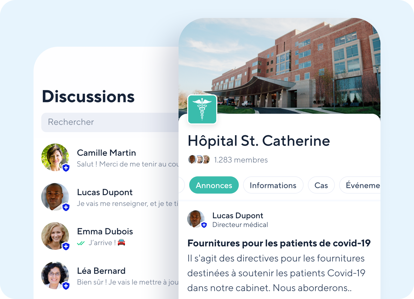 Une fois que votre organisation aura mis en place Connect pour Organisations, un réseau apparaîtra dans l’onglet Réseau de l’application Doctolib Connect pour tous les employés ou membres de votre organisation. À partir de là, les utilisateurs pourront voir et parcourir tout le contenu et les contacts de votre réseau.
