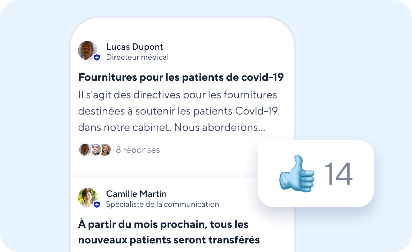 Avec Connect pour Organisations, vous pouvez faciliter l’utilisation de Doctolib Connect comme messagerie principale, pour remplacer, par exemple, les messageries non sécurisées dans votre organisation. Cela vous donne la possibilité de créer un réseau sur Doctolib Connect, dans lequel vous pouvez facilement collaborer les uns avec les autres.