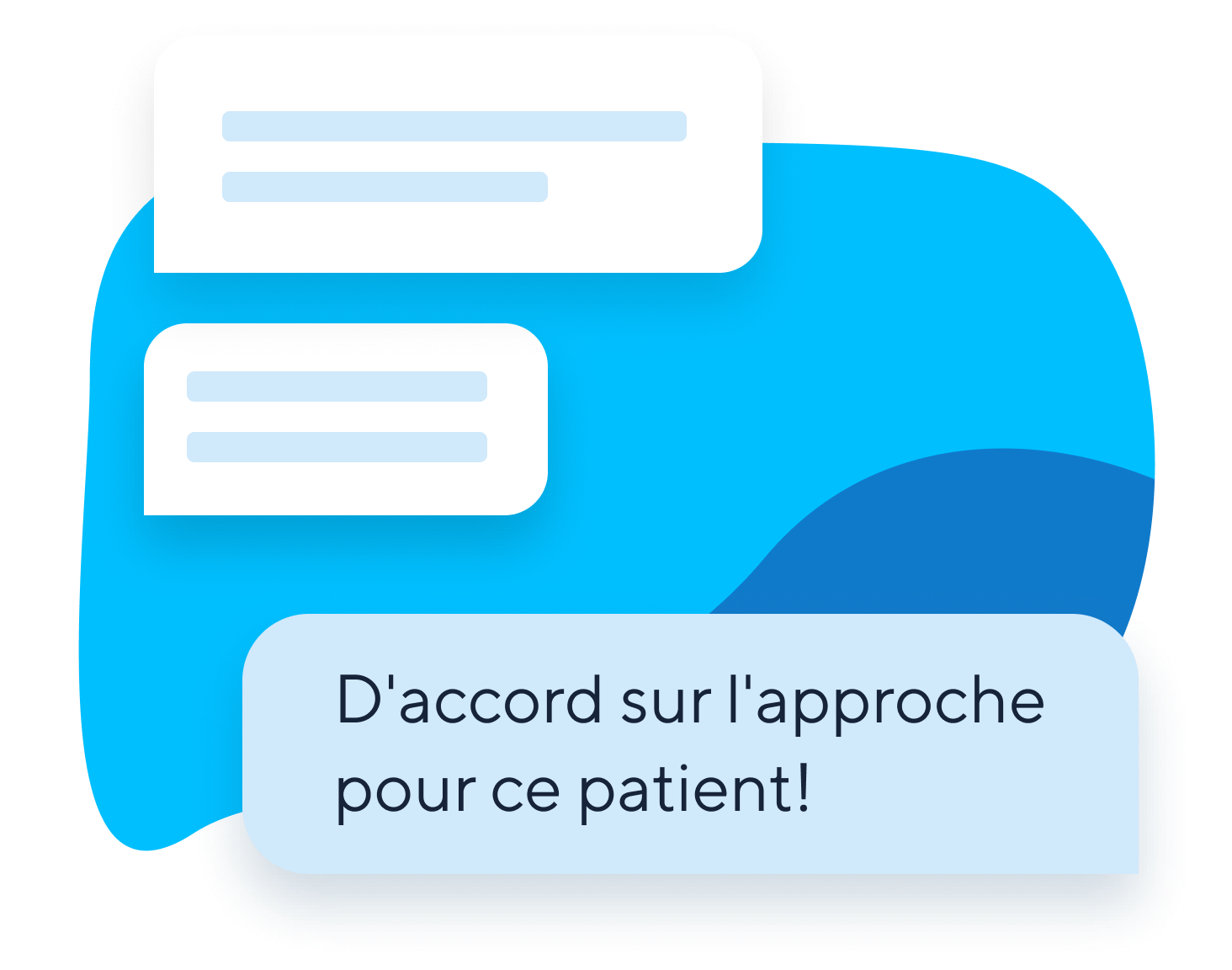 Envoyez des messages, effectuez des télé-expertises, appelez et discutez en vidéo pour coordonner les soins des patients avec vos coéquipiers et consulter des pairs externes.