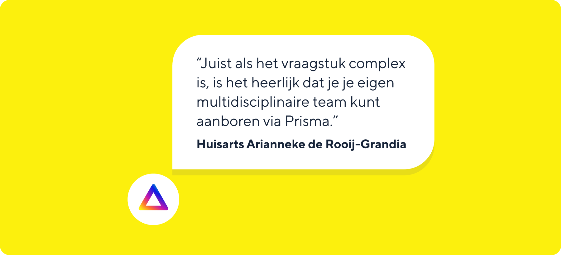 De Rooij-Grandia bevestigt: ‘Juist als het vraagstuk complex is, is het heerlijk dat je je eigen multidisciplinaire team kunt aanboren via Prisma.’5. Prisma geeft je snel een antwoord op je vraag